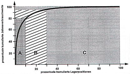 - A-Teile: nur etwa 10 % aller Artikel stellen 80% der Jahresverbrauchswerte; d.h. es sind Einzelteile mit hohem Einzelwert