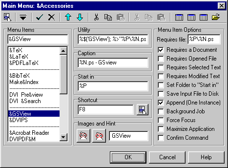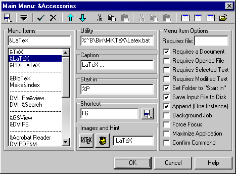 - Unter "Menu Items" den Eintrag "&LaTeX"