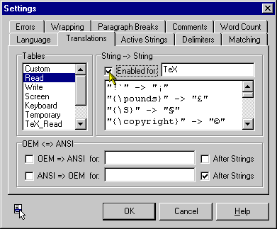 Einstellung für die Konvertierung der Umlaute in WinEdt